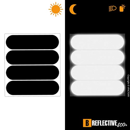 Specification: B REFLECTIVE – Kit 4 Stickers Autocollants Noirs Réfléchissants Casque Moto – Taille Bandes Homologuée FR – Visibilité – Sobre & Design – Adhérence optimisée