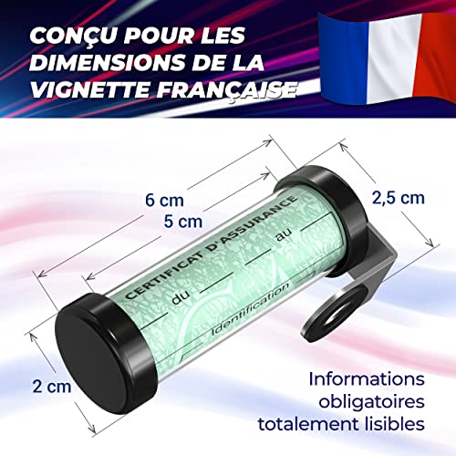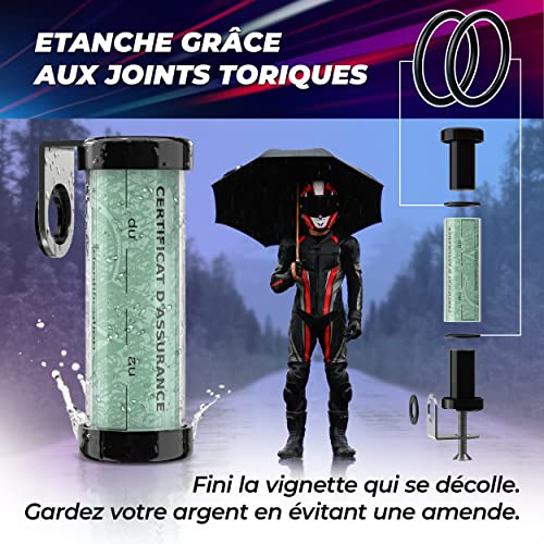 Specification: Capsule CY1 © | Support Porte Vignette Assurance Moto Tube Cylindrique Etanche Noir | Aussi pour Scooter et Quad | Accessoires Motard Etui Protection Document Carte Verte