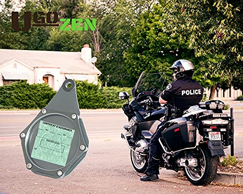 Specification: Porte Vignette Assurance Moto, Etui Support De Vignette Crit air ou Assurance Etanche Gris fonçé ✯Marque FRANÇAISE UGOZEN✯ Hexagonal pour Moto/Quad/Scooter + Ces 2 clés de Montage