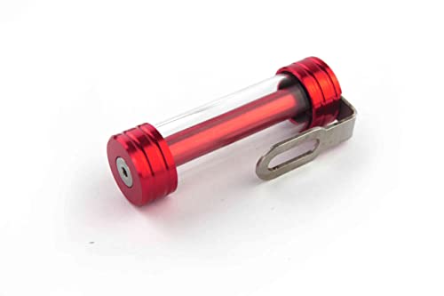 Support vignette carte verte assurance cylindrique rond anodisé rouge moto scoot. Support de vignette d’assurance cylindrique coloris anodisé rouge diamètre 20.5mm au niveau de la partie transparente longueur totale 76mm.