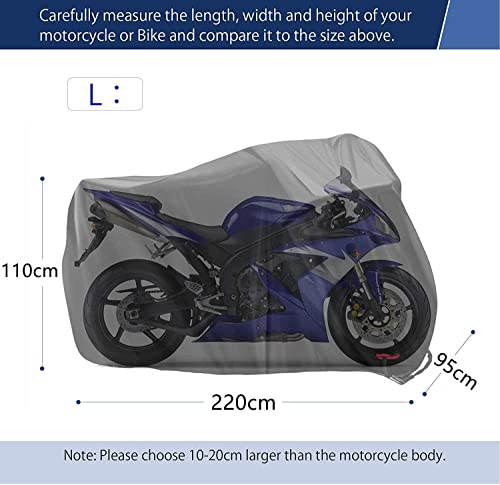 Specification: Bâche de Protection pour Moto – étanche 210D Oxford Housse ​de Protection Anti-poussière pour Moto avec Sac de Rangement en Trou de Serrure – Noir (220 x 95 x 110 cm)