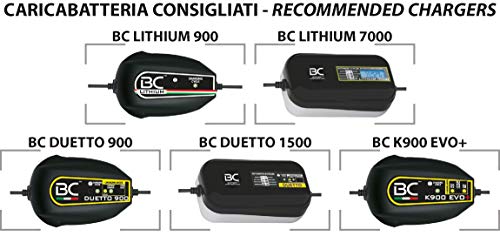 Lorsque la batterie est déconnectée du véhicule, elle maintient sa charge pendant longtemps, grâce à l’autodécharge réduite des batteries au lithium. Si la batterie reste installée sur la moto, nous recommandons un entretien régulier avec un chargeur de batterie spécifique (par exemple BC DUETTO).