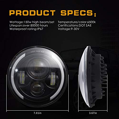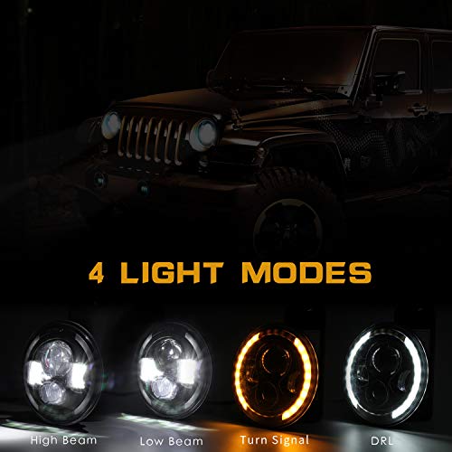 Specification: 7” Phare de Travail LED 300W 30000LM 4 Lentilles Angel Eyes 3000K+6000K 4 Modes Eclairages Rond Noir Cree Feux LED Off Road Feu Croisement DRL HI LO Beam pour Wrangler JK TJ LJ CJ Hummber H1 H2