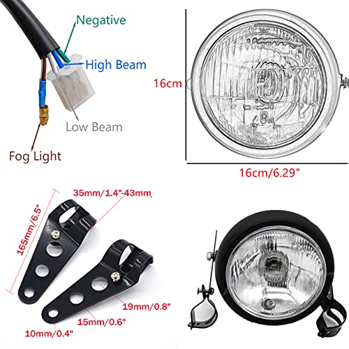 Specification: Ensemble de phare de moto de 6,29 “avec supports de montage, phares antibrouillard avant universels ronds rétro 35 W pour Cafe Racer Bobber CG125 GN125 (style 1)