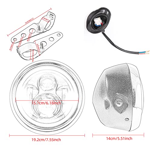Specification: Phare avant de moto 7.5 pouces Led phare de moto pour phares de café Racer Bobber Chopper