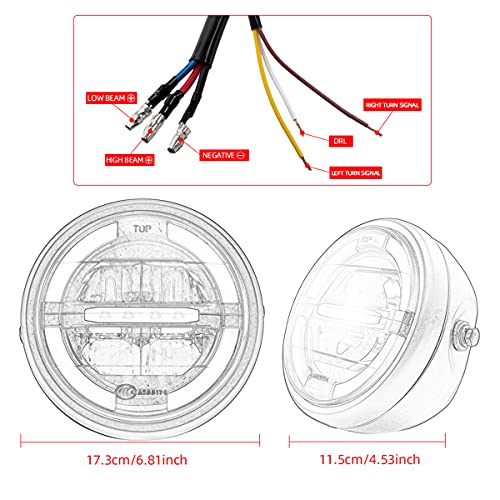 Universel : largeur de la lumière : 17,3 cm, convient aux motos avec un kit de phares à LED ronds de 6,5 à 7 pouces.