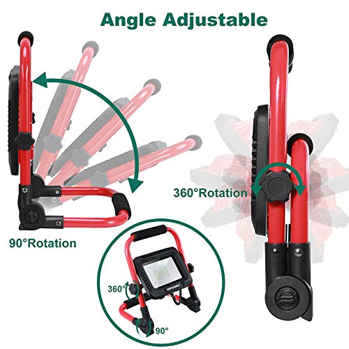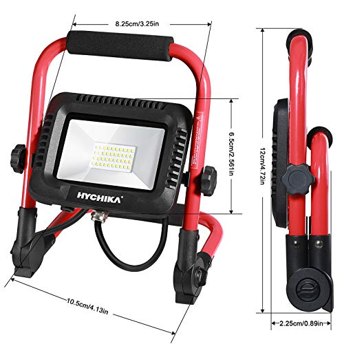 Specification: 30W Projecteur de Chantier LED, HYCHIKA 3000LM Lampe Chantier LED, 6500K Blanc, IP65 Imperméable, Chantier LED Portable, Rotation à 360°, Super Brillante, Câble de 2 m avec Prise